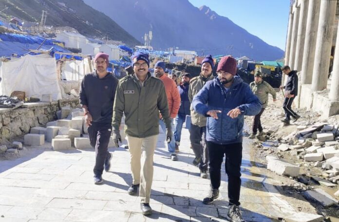 गौरीकुण्ड से श्री केदारनाथ धाम तक पैदल भ्रमण कर यात्रा मार्ग व वर्तमान पुलिस व्यवस्थापन का बारीकी से निरीक्षण कर आवश्यक जानकारी प्राप्त की गयी। आगामी वर्षों में नियुक्त होने वाले पुलिस बल के रुकने हेतु उचित आवासीय व्यवस्थाओं को ध्यान में रखते हुए किये जा सकने वाले निर्माण इत्यादि की कार्ययोजना तैयार किये जाने हेतु सम्बन्धित प्रभारियों को आवश्यक दिशा-निर्देश दिये गये। आज प्रातःकाल नव निर्मित पुलिस चौकी केदारनाथ भवन के हरेक कक्षों को सदुपयोग में लाये जाने तथा इन कक्षों की साज-सज्जा सही किये जाने के निर्देश दिये गये।