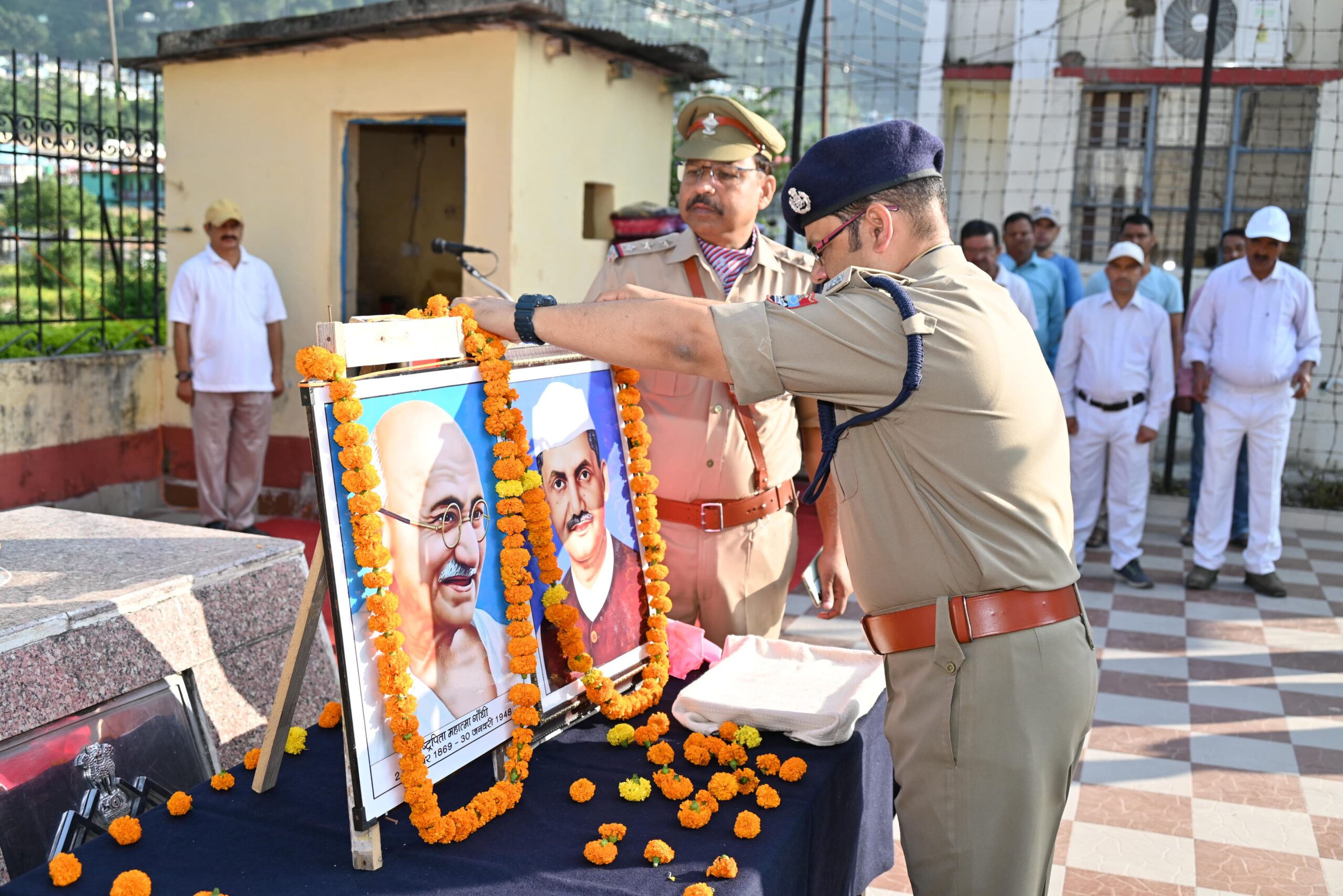 आज 2 अक्टूबर 2024 को राष्ट्रपिता महात्मा गांधी जी व भारत के पूर्व प्रधानमंत्री भारत रत्न लाल बहादुर शास्त्री जी की जयंती अंतर्राष्ट्रीय अहिंसा दिवस के अवसर पर पुलिस लाइन ज्ञानसू उत्तरकाशी व जनपद के समस्त थाना/चौकी व शाखा पर उत्तरकाशी पुलिस के अधिकारी/कर्मचारियों द्वारा लाल बहादुर शास्त्री जी के चित्र पर माल्यार्पण व श्रद्धासुमन अर्पित किए गये। सभी अधिकारी व कर्मचारियों द्वारा सत्य व अहिंसा की शपथ ली गयी।