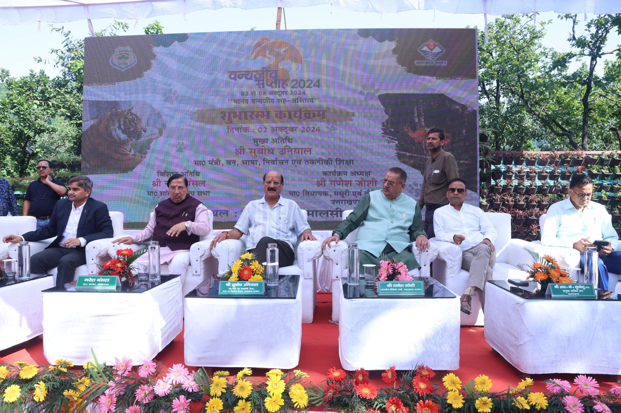 देहरादून जू में आयोजित कार्यक्रम में मुख्य अतिथि मा० वन मंत्री सुबोध उनियाल जी द्वारा देहरादून जू में 4 चिड़िया बाड़े तथा एनिमल क्वॉरेंटिन हाउस का निर्माण कार्य का शिलान्यास किया गया। तत्पश्चात जन-जागरूकता हेतु पोस्टर “वन्यजीव और हम, सावधानी से सह अस्तित्व एवं संजय साँधी जी द्वारा लिखित पुस्तक “घर पर तितलियाँ और पतंगे पालना का विमोचन किया गया। उक्त कार्यक्रम में देहरादून जू के पाँच वन कर्मियों को वन्यजीव संरक्षण में उनके सराहनीय कार्य के लिये प्रशस्ति पत्र देकर सम्मानित किया गया। राजकीय पूर्व माध्यमिक विद्यालय गलवाड़ी के बच्चों द्वारा स्वागत गान तथा वन्यजीव संरक्षण हेतु एक सांस्कृतिक कार्यक्रम प्रस्तुत किया गया। वन्यजीव सप्ताह के अवसर पर देहरादून जू में आयोजित चित्रकला प्रतियोगिता, फेस पेंटिंग प्रतियोगिता, मेहंदी आर्ट प्रतियोगिता में विभिन्न स्कुलों के बच्चों के द्वारा प्रतिभाग किया गया, जिसमें पुरस्कार जीतने वाले बच्चों को इस अवसर पर मा० वन मंत्री जी द्वारा सम्मानित किया गया। इस अवसर पर मा० वन मंत्री जी द्वारा वन्यजीव संरक्षण में वन विभाग के द्वारा किये जा रहे प्रयासों की सराहना करते हुए मानव वन्यजीव संघर्ष की घटनाओं पर और अधिक प्रभावी कार्यवाही करने हेतु निर्देशित किया गया। साथ ही वन्यजीव संरक्षण के कार्यों में स्थानीय जनसमुदाय की सहभागिता लेने पर जोर दिया गया। कार्यक्रम के अध्यक्ष मा० कैबिनेट मंत्री गणेश जोशी जी के द्वारा देहरादून जू में वन्यजीव संरक्षण के प्रयासों की सराहना की गई तथा इसके विस्तार पर जोर दिया गया। विशिष्ट अतिथि मा० राज्यसभा सांसद नरेश बंसल जी के द्वारा मानव और वन्यजीवों के सह-अस्तित्व पर जोर देते हुए वन्जीवों के महत्व के विषय में बताया गया। प्रमुख सचिव वन एवं पर्यावरण आर0के0 सुधांशु जी के द्वारा देहरादून जू में पर्यटकों की संख्या प्रतिवर्ष 7 लाख से अधिक होने तथा इससे प्राप्त राजस्व 04 करोड से अधिक होने की जानकारी दी गयी, तथा भविष्य में देहरादून जू के विस्तार संबंधी जानकारी दी गयी। प्रमुख वन संरक्षक (HoFF) धनंजय मोहन जी ने विभाग द्वारा वन्यजीव संरक्षण में कराये जा रहे कार्यों के संबंध में अवगत कराया गया तथा इस संबंध में अधिक से अधिक जन-जागरूकता तथा स्थानीय समुदाय का सहयोग लेने के विषय में बताया गया। प्रमुख वन संरक्षक (वन्यजीव) रंजन कुमार मिश्र जी के द्वारा दि0 02 अक्टूबर से 08 अक्टूबर 2024 तक वन्यजीव सप्ताह के अंतर्गत उत्तराखण्ड राज्य में वन विभाग के द्वारा आयोजित कराये जाने वाले कार्यक्रमों के बारे में विस्तार से बताया गया। कार्यक्रम में प्रमुख वन संरक्षक श्री बी०पी० गुप्ता, प्रमुख वन संरक्षक जी०एस० पाण्डे, अपर प्रमुख वन संरक्षक (वन