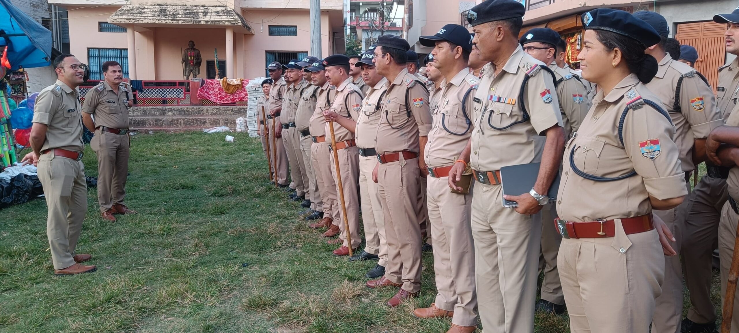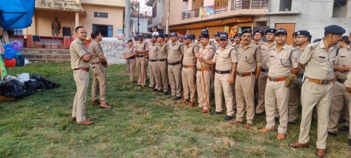 रामलीला एवं दुर्गा पूजन के सुरक्षा व्यवस्था को देखते हुए पुलिस अधीक्षक चन्द्रशेखर घोडके (IPS) द्वारा विशेष निर्देश दिये गये हैं। जिसके अनुक्रम में आज दिनांक 03/10/24 को पुलिस उपाधीक्षक बागेश्वर अंकित कण्डारी द्वारा पुलिस टीम के साथ कोतवाली क्षेत्रान्तर्गत रामलीला व दुर्गा पूजा महोत्सव को सकुशल सम्पन्न कराने के लिए रामलीला व दुर्गा पूजा स्थल, नुमाईश खेत से नगर क्षेत्र में फ्लैग मार्च निकाला गया। जहां पुलिस ने जनता से संपर्क साधा और उन्हें इस अवसर पर संयमित और शांति से रहने की अपील की गयी।