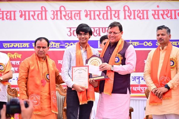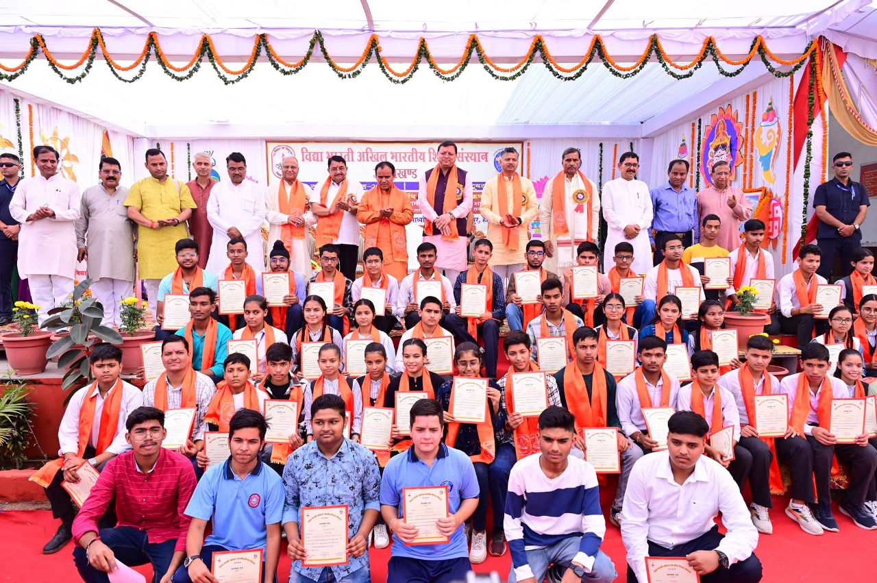 देहरादून: आज विद्या भारती द्वारा आयोजित प्रतिभा सम्मान समारोह में उत्तराखण्ड बोर्ड की हाईस्कूल एवं इंटरमीडिएट परीक्षाओं में उत्कृष्ट प्रदर्शन करने वाले विद्यार्थियों को सम्मानित किया गया। इस अवसर पर उत्तराखण्ड के मुख्यमंत्री पुष्कर सिंह धामी ने छात्रों को हार्दिक बधाई दी और उनके उज्ज्वल भविष्य की शुभकामनाएं दी।