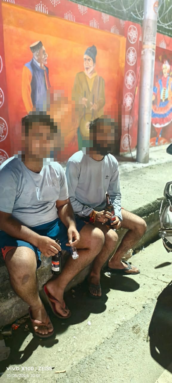 सार्वजनिक स्थानों पर सड़क किनारे तथा वाहनों में शराब पीने वाले 56 व्यक्तियों के पुलिस ने किए चालान