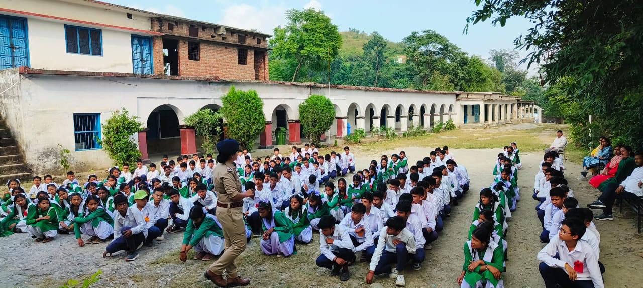 जिसके क्रम में थाना लक्ष्मणझूला पुलिस टीम द्वारा राजकीय इंटर कॉलेज पोखरखाल लक्ष्मणझूला, देवप्रयाग पुलिस टीम द्वारा राजकीय इंटर कॉलेज सबदरखाल एवं थाना सतपुली पुलिस द्वारा जवाहर नवोदय विद्यालय, खैरासैण, सतपुली मैं जाकर स्कूल स्टाफ व स्कूल के छात्र छात्राओं को महिला एवं बच्चों संबंधी अपराधों (मानव तस्करी, दहेज उत्पीड़न, घरेलू हिंसा, छेड़खानी), नशे से होने वाले दुष्प्रभावों, सोशल मीडिया के दुष्प्रभावों,साइबर अपराधों से बचाव के बारे में विस्तृत जानकारी दी गयी साथ ही गौरा शक्ति एप तथा नए कानून के संबंध में जानकारी देते हुए ड्रॉप बॉक्स में सुझाव या शिकायत के संबंध में जागरूक किया गया तथा बच्चों को” एक साझू प्रयास पुलिस वाला गुरु जी का साथ” के संबंध में “गुड टच बैड़ टच” के बारे में जागरूक किया गया। इसके अतिरिक्त आपात कालीन नम्बर -112, साइबर हेल्प लाइन नम्बर-1930 की जानकारी भी दी गयी।