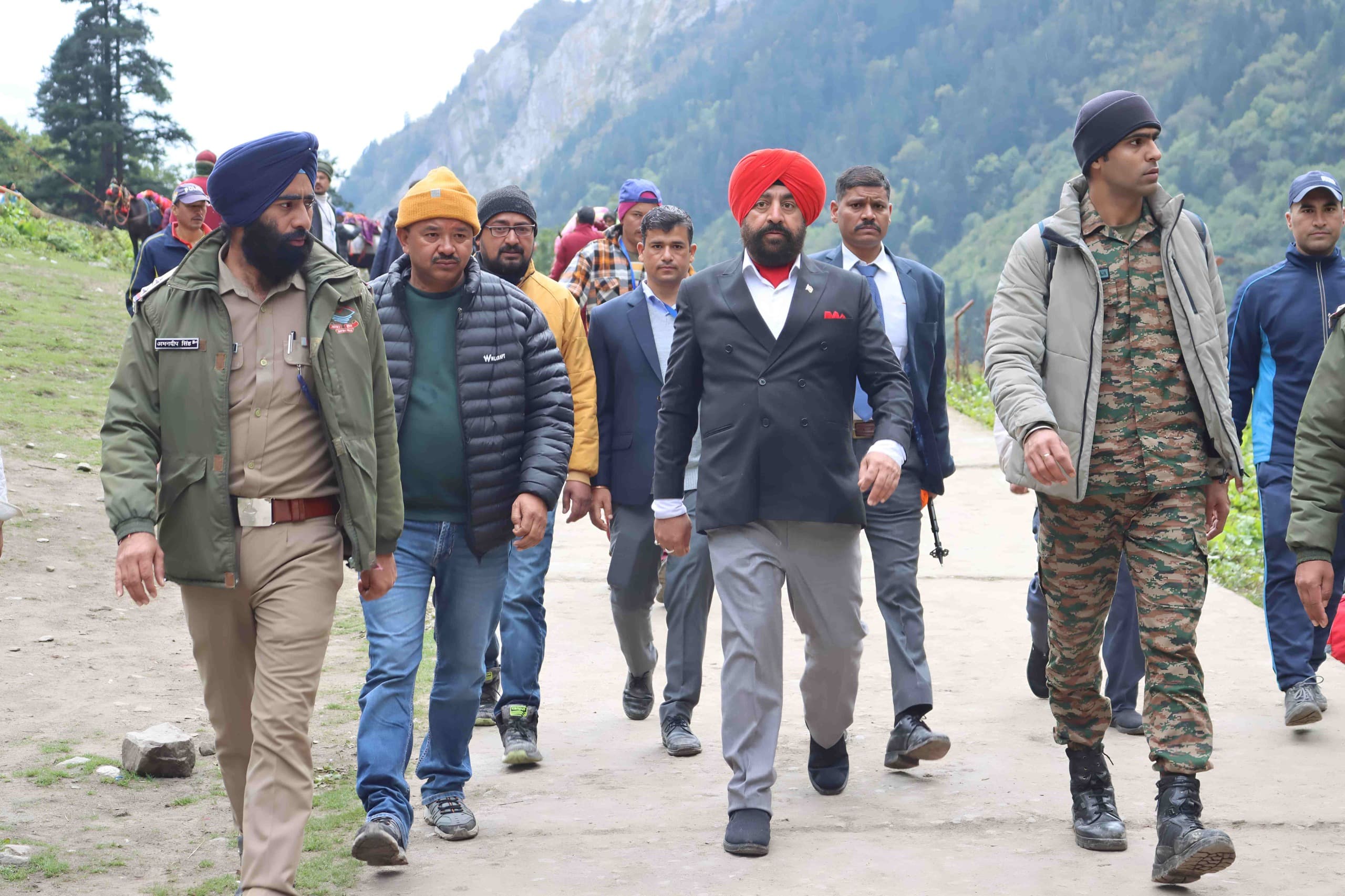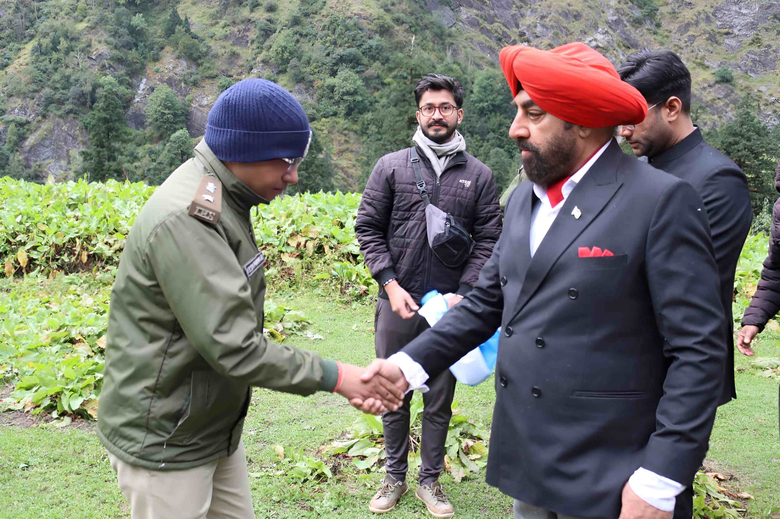 राज्यपाल महोदय के घांघरिया पहुंचने पर हेलीपैड पर पुलिस अधीक्षक चमोली श्री सर्वेश पंवार व मुख्य विकास अधिकारी श्री नंदन कुमार द्वारा पुष्पचगुच्छ भेंट कर स्वागत किया गया। तदोपरांत चमोली पुलिस के जवानों द्वारा बेहद सजग और अनुशासित तरीके से किया गया।