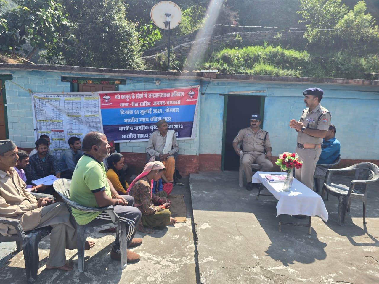 दिनांक 10-10-2024 को थानाध्यक्ष रीठा साहिब कमलेश भट्ट के नेतृत्व में उनकी टीम द्वारा ग्राम धरसो में जाकर ग्रामीणों के साथ मीटिंग कर जन जागरूकता अभियान चलाते हुए उन्हें महिला सम्बन्धी अपराध, सोशल मीडिया प्लेटफार्म के माध्यम से होने वाले महिला अपराध ,अन्य अपराध, घरेलू हिंसा के विषय में व नए कानून साइबर अपराध नशा मुक्ति अभियान आदि के बारे में जानकारी दी गई तथा किसी भी अपराध की सूचना तत्काल पुलिस को देने की अपील की गई तथा पीडित लोंगों को तत्काल सहायता प्रदान करने हेतु जारी महिला/साइबर हेल्पलाइन नं0- 112, 1091, 1930, व अन्य आपातकालीन नं0 व गौरा शक्ति एप के बारे में जानकारी दी गई इस दौरान धरासू में 02 नाली भूमि भांग की खेती को नष्ट किया गया