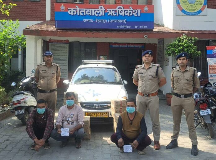 मां0 मुख्यमंत्री उत्तराखण्ड के “ड्रग फ्री देवभूमि 2025” के विजन को साकार करने के लिए वरिष्ठ पुलिस अधीक्षक देहरादून द्वारा सभी अधीनस्थों को अपने-अपने थाना क्षेत्रों में अवैध मादक पदार्थों/अवैध शराब की तस्करी में लिप्त अभियुक्तों को चिन्हित करते हुए उनके विरूद्ध कठोर वैधानिक कार्यवाही किये जाने हेतु निर्देश दिये गये हैं। जिसके अनुपालन में कोतवाली ऋषिकेश पर गठित पुलिस टीम द्वारा दिनांक: 13-10-24 को थाना क्षेत्रान्तर्गत चैकिंग के दौरान मुखबिर की सूचना पर जंगलात बैरियर ऋषिकेश के पास 03 अभियुक्तो 01- गुरुचरण उर्फ मुन्ना को 10.08 ग्राम अवैध स्मैक, 02- दिनेश कुमार उर्फ गोलू को 05.19 ग्राम अवैध स्मैक तथा 03: बालेन्द्र सजवाण को 20 गत्ते की पेटियो में (कुल 896 पाउच ट्रैटा पैक) देशी शराब माल्टा के साथ गिरफ्तार कर घटना में प्रयुक्त वाहन को सीज किया गया।