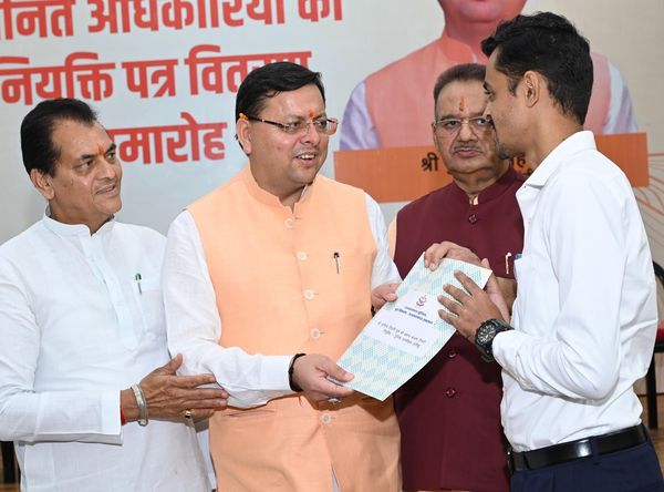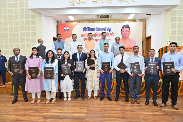 उत्तराखंड के मुख्यमंत्री पुष्कर सिंह धामी ने आज मुख्य सेवक सदन में 19 विभागों में चयनित 289 अधिकारियों को नियुक्ति पत्र प्रदान किए। उन्होंने सभी नवनियुक्त अधिकारियों को उज्ज्वल कार्यकाल हेतु हार्दिक बधाई और शुभकामनाएं दीं। मुख्यमंत्री ने कहा कि ये सभी अधिकारी अमृतकाल के कर्मयोगी और प्रदेश की विकास यात्रा के सहयात्री हैं। उन्होंने अधिकारियों से आग्रह किया कि वे जिस भी विभाग में कार्यभार ग्रहण करेंगे, वहां नवाचार, निष्ठा और सेवा भाव को प्राथमिकता दें।