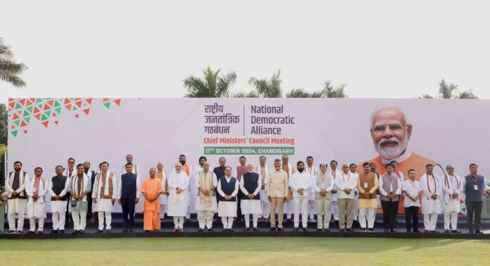 उत्तराखंड के मुख्यमंत्री पुष्कर सिंह धामी ने आज चंडीगढ़ में आयोजित राष्ट्रीय जनतांत्रिक गठबंधन (NDA) के मुख्यमंत्री परिषद की बैठक में भाग लिया। इस बैठक की अध्यक्षता आदरणीय प्रधानमंत्री श्री नरेंद्र मोदी ने की। मुख्यमंत्री धामी ने बताया कि इस अवसर पर प्रधानमंत्री जी ने विकसित भारत के संकल्प को पूरा करने के लिए विभिन्न महत्वपूर्ण बिंदुओं पर मार्गदर्शन प्रदान किया।