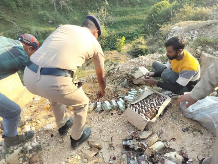 थाना गंगोलीहाट पुलिस ने जब्त शराब का किया विधिवत निस्तारण, माननीय न्यायालय के आदेश पर कार्रवाई