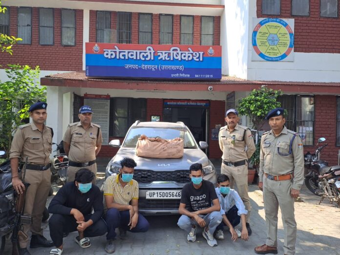जिसके क्रम मे दिनांक 19-10-2024 को चैकिंग के दौरान मुखबिर की सूचना ऋषिकेश पुलिस तथा एसओजी की संयुक्त टीम द्वारा गोल चक्कर आईडीपीएल ऋषिकेश के पास आकास्मिक चेकिंग के दौरान 04 अभियुक्तो को 12 किलो 200 ग्राम अवैध गांजे मय वाहन संख्या: यू0पी0-15-डीक्यू-5646 KIA SELTOS कार के साथ गिरफ्तार किया गया। अभियुक्तों के विरूद्ध एनडीपीएक्ट के तहत अभियोग पंजीकृत किया गया। अभियुक्तों द्वारा पूछताछ में बतया गया कि वे सभी मेरठ के रहने वाले हैं तथा दीपावली के समय उक्त गांजे को महंगे दामों में बेचकर मुनाफा कमाने की फिराक में थे। किन्तु इससे पहले ही उन्हें दून पुलिस द्वारा गिरफ्तार कर लिया गया।