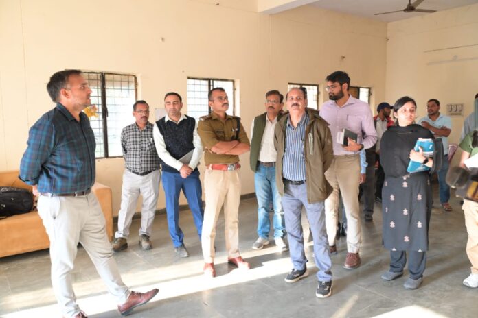 07-केदारनाथ विधान सभा उप निर्वाचन के लिए अगस्त्यमुनि क्रीड़ा भवन में बनाए जाने वाले स्ट्रांग रूम एवं मतगणना हाॅल के लिए की जाने वाली तैयारियों एवं व्यवस्थाओं जिला निर्वाचन अधिकारी रुद्रप्रयाग सौरभ गहरवार व एसपी रुद्रप्रयाग अक्षय प्रहलाद कोंडे ने लिया जायजा