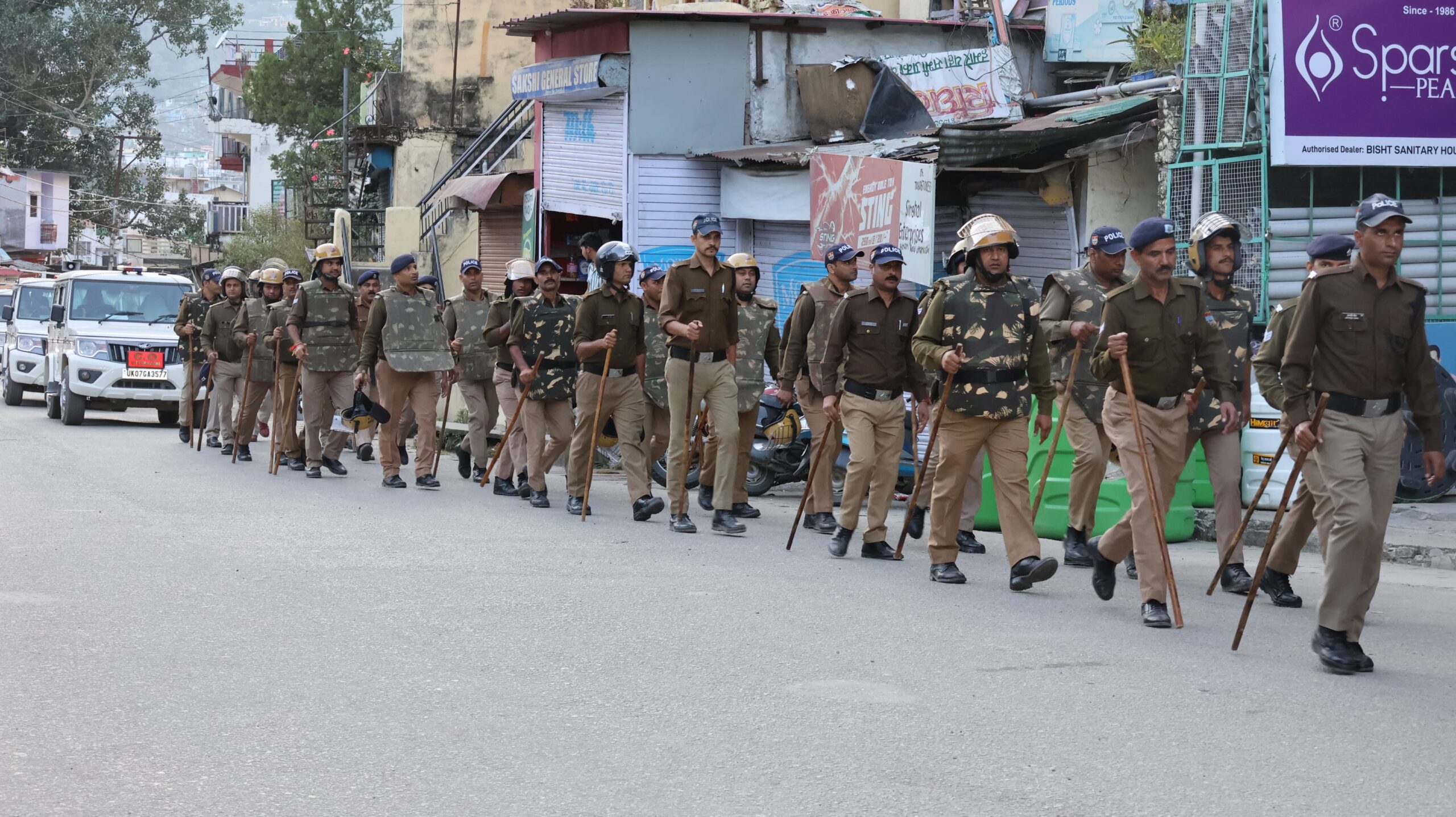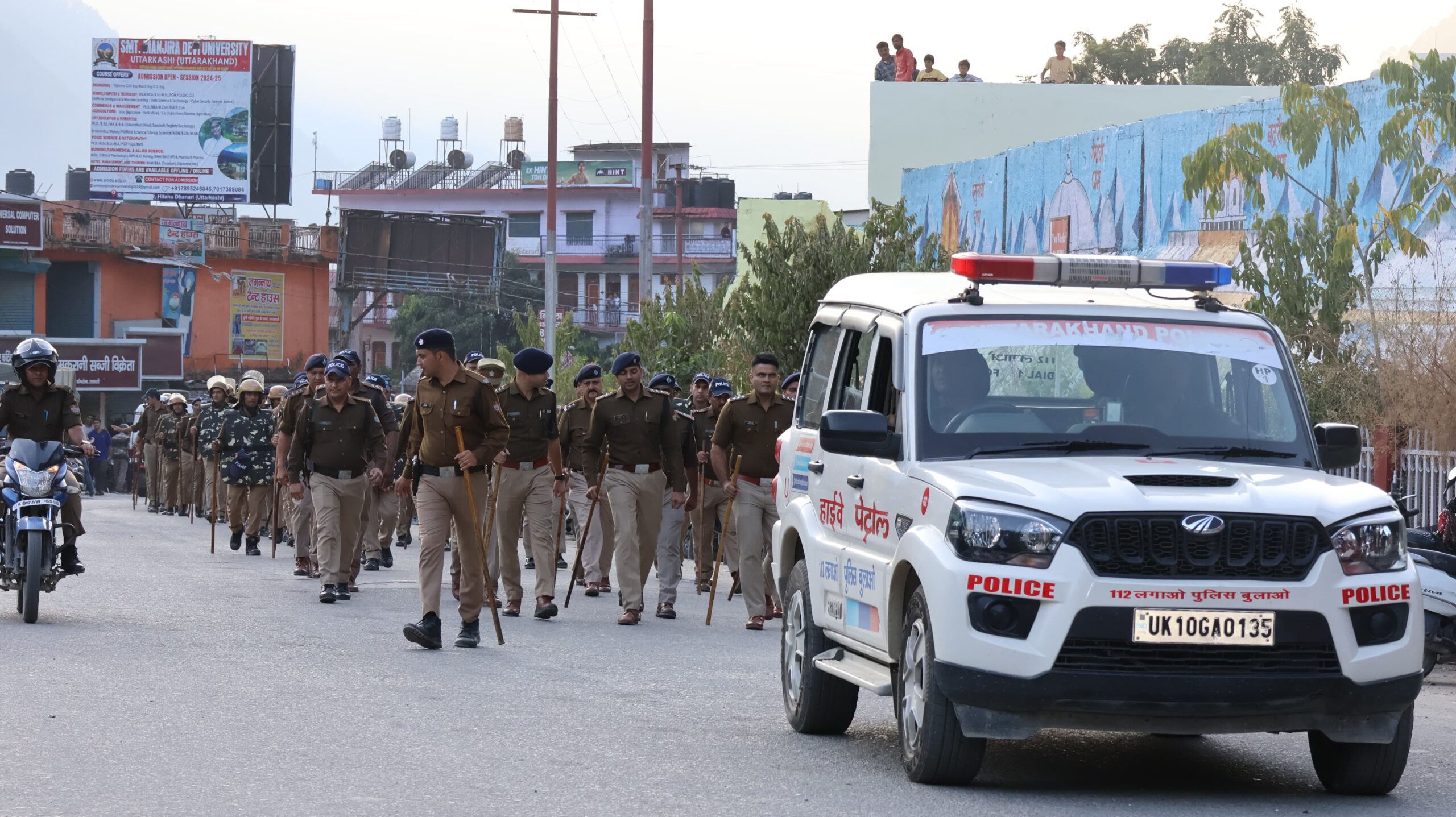 जनपद में कानून एवं शान्ति व्यवस्था बनाए रखने, जिला प्रशासन द्वारा लागू धारा 163 BNSS (पूर्व में धारा 144 CrPC) के पालन कराये जाने के उद्देश्य से श्रीमान पुलिस अधीक्षक उत्तरकाशी के दिशा-निर्देशन में उत्तरकाशी पुलिस द्वारा आज दिनांक 25.10.2024 को उत्तरकाशी मुख्यालय में पैदल एवं वाहनों से फ्लैग मार्च निकाला गया।