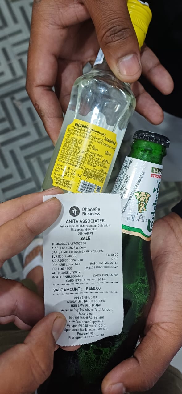 शराब की ओवर रेटिंग को लेकर डीएम सविन बंसल के निर्देश पर समस्त तहसील अंतर्गत अवस्थित शराब की दुकानों पर चलाया सघन छापेमारी अभियान। तहसील सदर, विकासनगर, डोईवाला,मसूरी में छापेमारी अभियान,