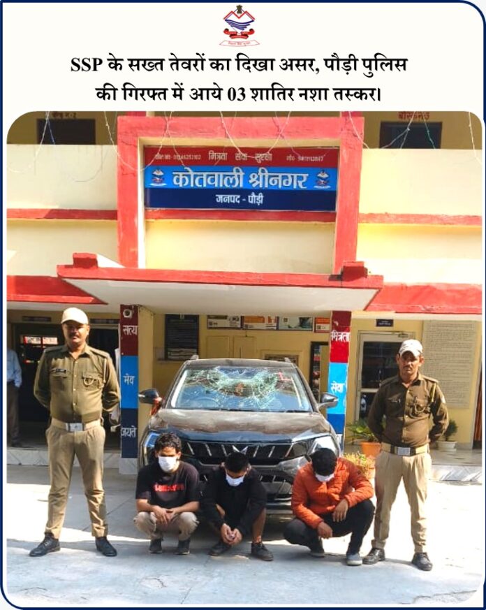 SSP के सख्त तेवरों का दिखा असर, पौड़ी पुलिस की गिरफ्त में आये 03 शातिर नशा तस्कर।