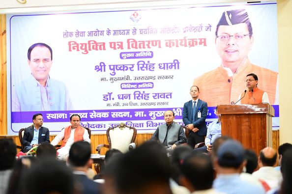उत्तराखंड के मुख्यमंत्री पुष्कर सिंह धामी का बड़ा बयान: 108 असिस्टेंट प्रोफेसर्स को मिला नियुक्ति पत्र, शिक्षा को और सुदृढ़ बनाने का संकल्प