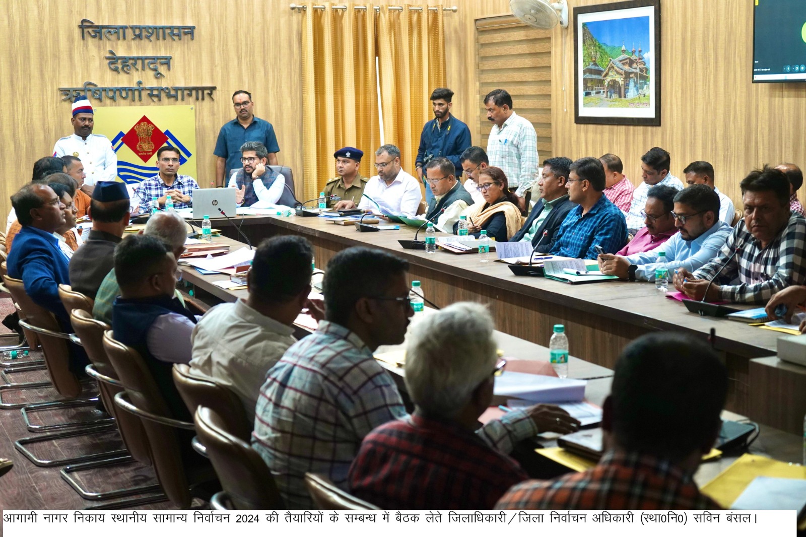 देहरादून दिनांक 05 नवंबर 2024(जि.सूका) जिलाधिकारी/जिला निर्वाचन अधिकारी (स्था0नि0) सविन बंसल की अध्यक्षता में आगामी नागर निकाय स्थानीय सामान्य निर्वाचन 2024 की तैयारियों एवं व्यवस्थाओं के संबंध में ऋषिपर्णा सभागार में नियुक्त नोडल एवं सह नोडल अधिकारियों के साथ बैठक आयोजित कर आवश्यक दिशा निर्देश दिए।