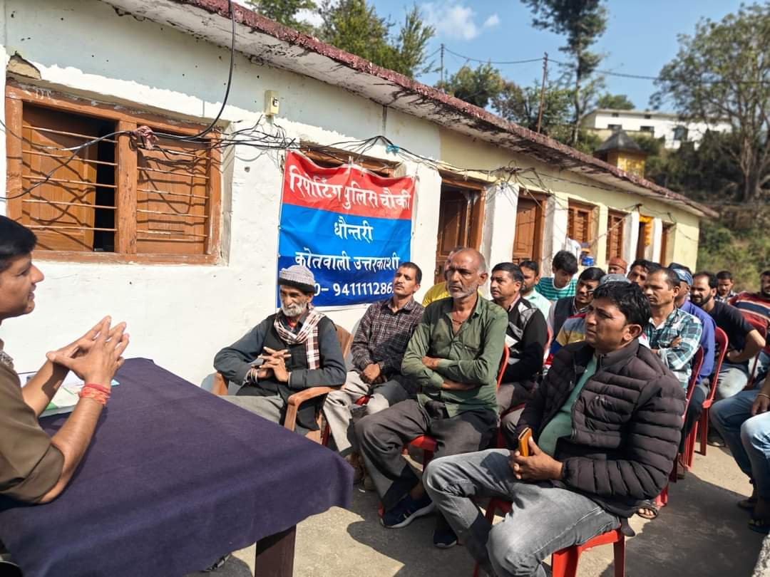 पुलिस चौकी धौन्तरी के नवनियुक्त प्रभारी ASI प्रमोद उनियाल द्वारा आज स्थानीय व्यापार मंडल, टैक्सी यूनियन के पदाधिकारियों एवं ग्राम प्रधानों के साथ मीटिंग आयोजित की गई। मीटिंग में क्षेत्र की कानून, शान्ति, यातायात व्यवस्था, अवैध नशे/मादक पदार्थो की रोकथाम, साइबर अपराध, महिला सम्बन्धी अपराधो तथा अन्य क्षेत्रीय समस्याओं के सम्बन्ध में विस्तृत चर्चा-परिचर्चा की गई। उनके द्वारा सभी को एक बेहतर तथा प्रभावी पुलिस एवं कानून व्यवस्था का भरोसा दिया। सभी गणमान्य लोगों से कानून एवं शान्ति व्यवस्था बनाने में पुलिस का सहयोग करने की अपील की गयी।