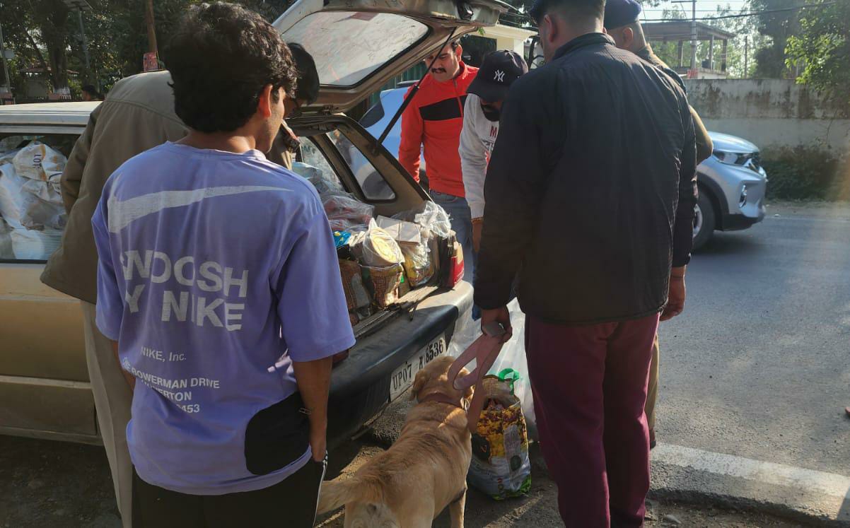 डॉग स्क्वाड की मदद से वाहनों की जांच