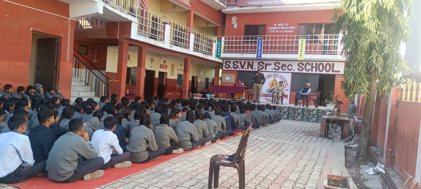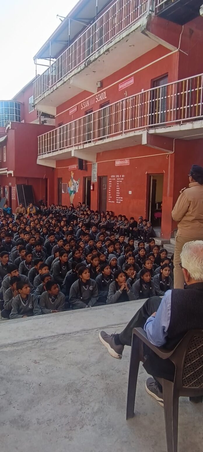आज दिनांक: 04-12-2024 को रायावाला पुलिस द्वारा एसएसवीएन सीनियर सैकेण्डरी स्कूल रायवाला में जाकर वहां अध्ययनरत छात्र-छात्राओं को यातायात के नियमों की जानकारी दी गयी। इस दौरान उपस्थित छात्र-छात्राओं को मार्गों पर लगे यातायात चिन्हों, चौराहों पर लगी ट्रैफिक लाइटों तथा सड़क पर चलते समय बरती जाने वाली सावधानियों के सम्बन्ध में विस्तारपूर्वक जानकारी दी गई। साथ ही सभी उपस्थित छात्र-छात्राओं व अध्यापकगणो को अपने परिजनों, रिश्तेदारों, मित्रगणों तथा आस-पास के लोगों को भी यातायात के नियमों का पालन करने के प्रति जागरूक करने के लिये प्रेरित किया गया।