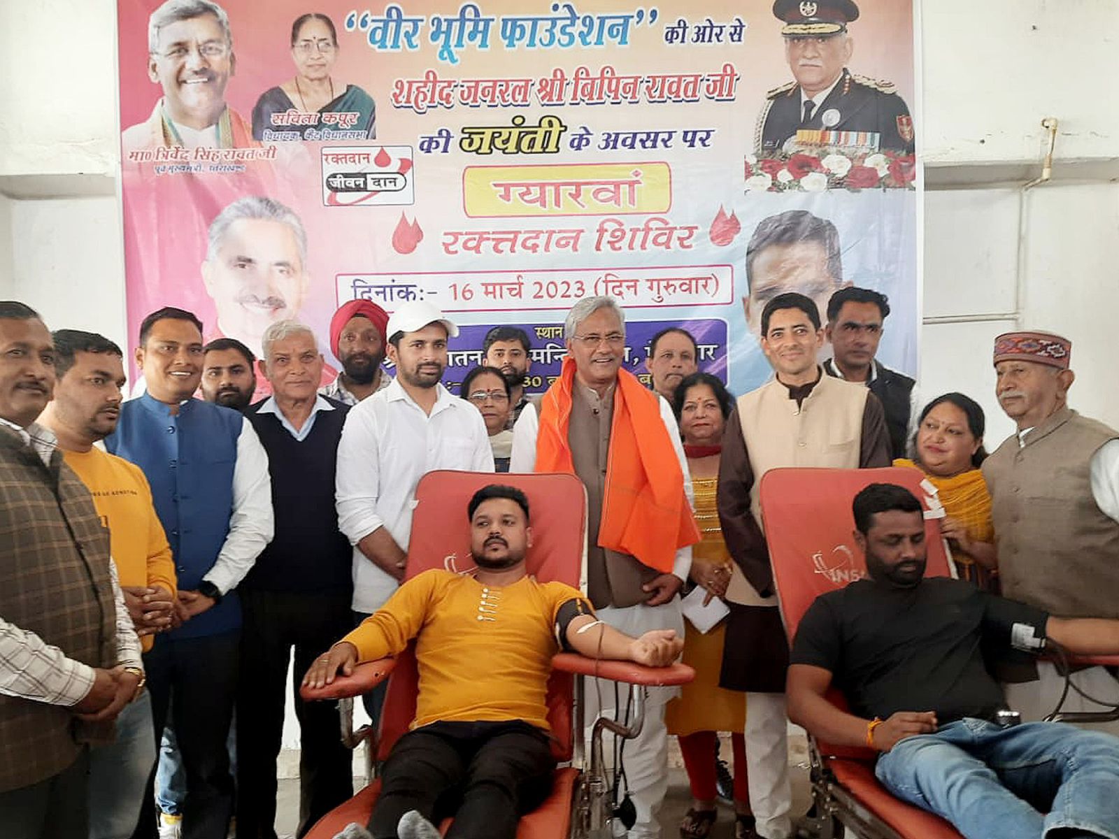इससे पूर्व, वर्ष 2022 में भी जनरल बिपिन रावत की पुण्य स्मृति में उनकी पुण्यतिथि पर देहरादून, हल्द्वानी व कोटद्वार में रक्तदान शिविर आयोजित किए गए थे, जिसमें लोगों ने राष्ट्रहित में रक्तदान कर जनरल रावत को श्रद्धांजलि अर्पित की थी। हरिद्वार सांसद त्रिवेंद्र सिंह रावत का मानना है कि महायोद्धा जनरल बिपिन रावत ने उत्तराखंड की धरती से निकलकर पूरे देश में नाम कमाया। मां भारती की सेवा की। इसलिए कृतज्ञ राष्ट्र का यह दायित्व बनता है कि वह भारत के इस लाल की स्मृतियों को हमेशा संजोकर रखे। स्मृतियों को चिर स्थायी बनाने के लिए कार्य करे। इस उद्देश्य को लेकर हमने कदम आगे बढ़ा दिए हैं और जनरल बिपिन रावत को याद करते हुए रचनात्मक कार्यक्रमों की श्रृंखला को जारी रखा जाएगा।