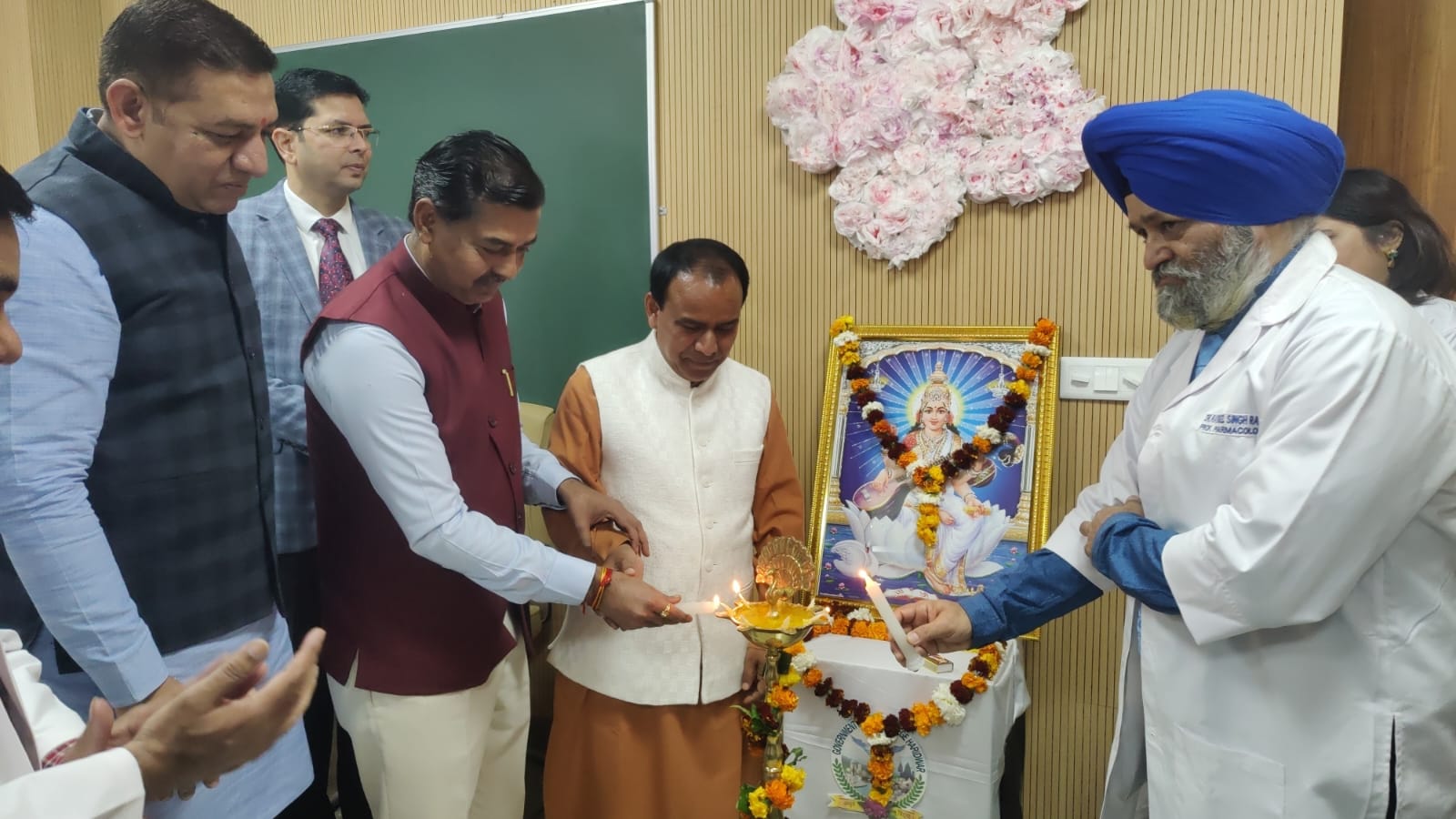 राजकीय मेडिकल कॉलेज हरिद्वार में मंगलवार को व्हाइट कोर्ट सेरेमनी का आयोजन किया गया। मुख्य अतिथि प्रदेश के चिकित्सा शिक्षा मंत्री डॉ धनसिंह रावत रहे। इस दौरान सभागार में उपस्थित पहले बैच के सभी 100 बच्चों को चरक शपथ दिलाते हुए व्हाइट कोर्ट पहनाया गया। इस सेरेमनी के बाद सभी स्टूटेंस के चेहरे खुशी से खिल उठे। अपने संबोधन में मुख्य अतिथि डॉ धनसिंह रावत ने राजकीय मेडिकल कॉलेज हरिद्वार के प्रथम बैच के स्टूडेंस से कहा कि तुम पहले बैच के सौभाग्यशाली हो, अब इस मेडिकल कॉलेज की छवि बनाना आपके हाथ में है। इस कॉलेज को एक आदर्श कॉलेज बनाने की जिम्मेदारी अब आपकी है। उन्होंने कहाकि पढ़ायी के दौरान यहां किसी प्रकार के संसाधनों की कमी नहीं होने दी जाएगी। स्टूडेंटस के उज्जवल भविष्य की कामना करते हुए कहा कि पढ़ाई के लिए ई लाइब्रेरी की सुविधा उपलब्ध करायी गई है।