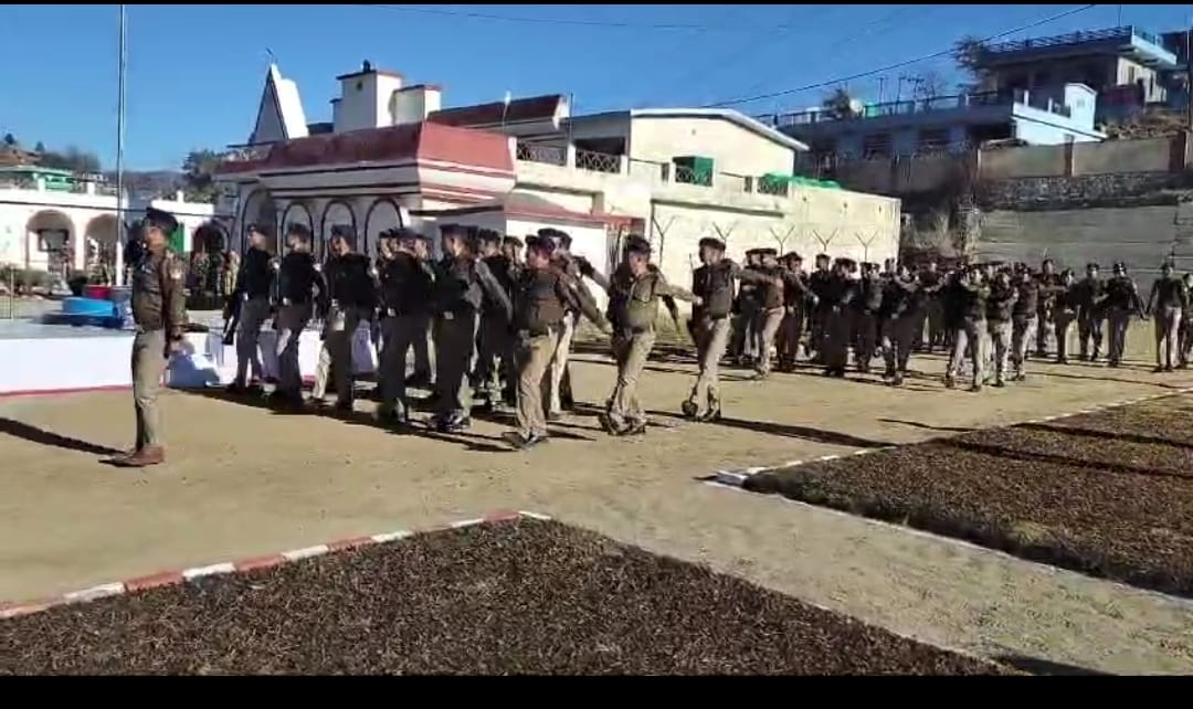 पुलिस जवानों को शारीरिक रूप से फिट रखने तथा अनुशासन बनाये रखने हेतु कराई गई पुलिस लाइन चंपावत में परेड