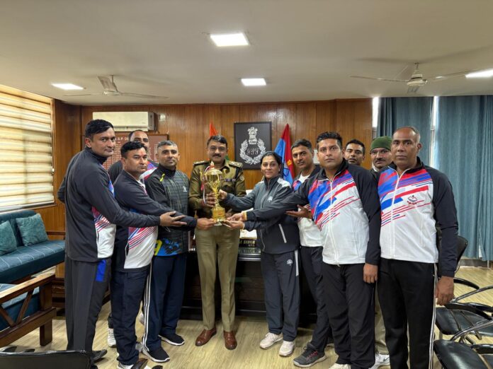 विजेता टीम ने एसएसपी देहरादून से शिष्टाचार भेंट कर प्रदान की विजेता ट्राफी।