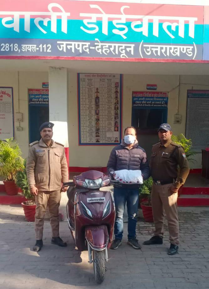 दिनांक 16-12-2024 को चैकिग के दौरान डोईवाला पुलिस द्वारा चौकी गेट लालतप्पड के पास से अभियुक्त सुमित बंसल पुत्र राकेश बंसल को स्कूटी सं0: यू0के0-07-एफएस-1689 से 01 किलो 640 ग्राम अवैध गांजे की तस्करी करते हुए गिरफ्तार किया गया। अभियुक्त के विरूद्ध एनडीपीएस एक्ट का अभियोग पंजीकृत किया गया। पूछताछ के दौरान अभियुक्त का पूर्व मे जिला मुज्जफरनगर के थाना नई मण्डी से आबकारी अधिनियम व गैगंस्टर एक्ट, थाना खतौली से आबकरी अधिनियम व थाना सिविल लाईन्स से वाहन चोरी व फर्जी आरसी/नम्बर प्लेट के अभियोग तथा थाना ऋषिकेश से आबकारी अधिनियम जेल जाना प्रकाश में आया है।