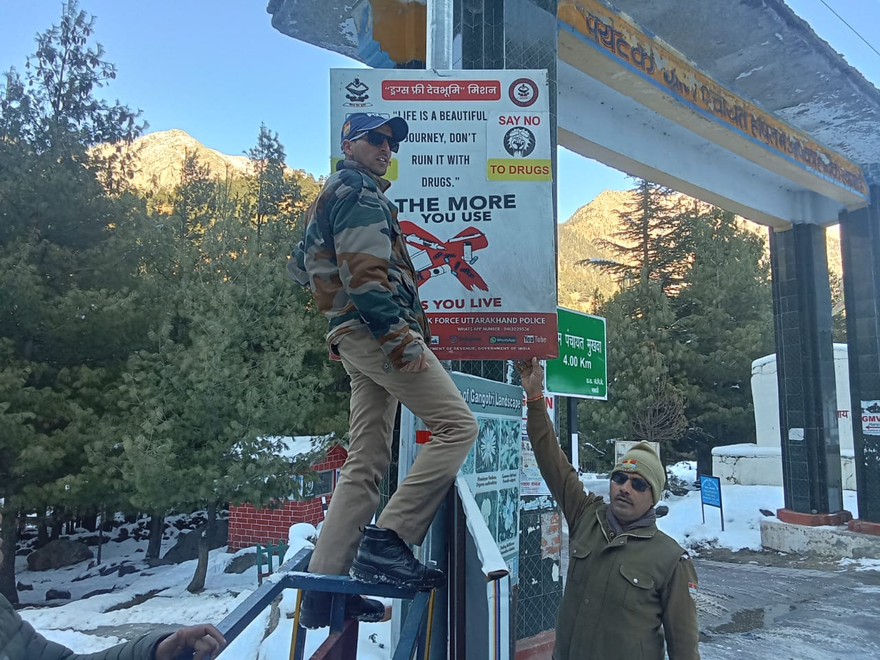 वहीं, थाना हर्षिल पुलिस ने हर्षिल बाजार में नशे से संबंधित जन जागरूकता फ्लेक्सी बोर्ड लगवाए और शैलानियों व स्थानीय लोगों को नशे से दूर रहने के संबंध में पम्पलेट वितरित किए।