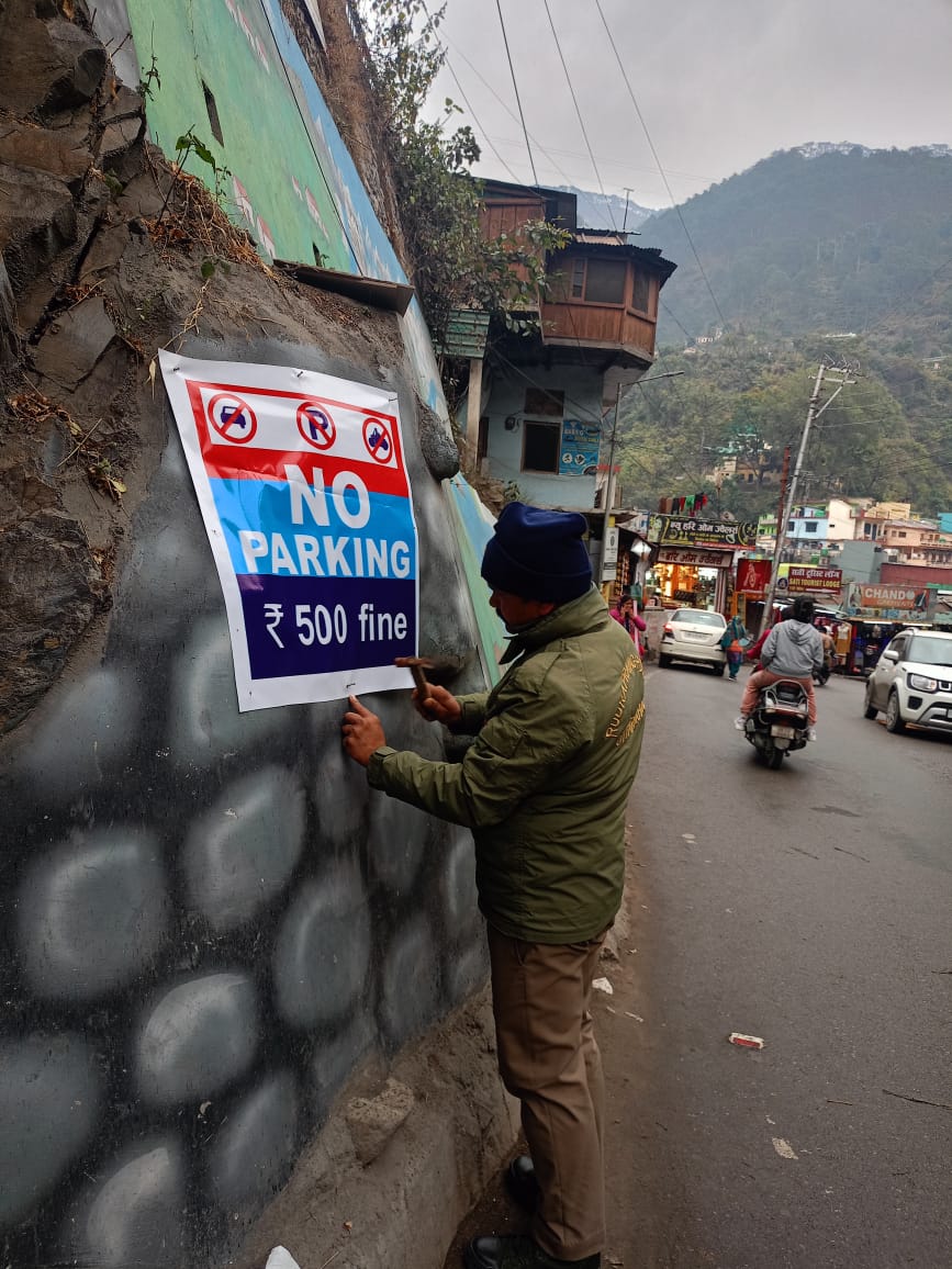 प्रभारी निरीक्षक कोतवाली रुद्रप्रयाग मनोज नेगी द्वारा कस्बा रुद्रप्रयाग सहित मुख्य बाजार रुद्रप्रयाग में ट्रैफिक जाम की समस्या से राहत दिलाने के लिए ऐसे स्थानों पर जहां बहुतायत में वाहन स्वामियों द्वारा वाहनों को गलत तरीके से पार्क कर यातायात को बाधित किया जाता है, उन स्थानों को नो पार्किंग एरिया चिन्हित कर नो पार्किंग के बोर्ड लगवाये गये हैं।