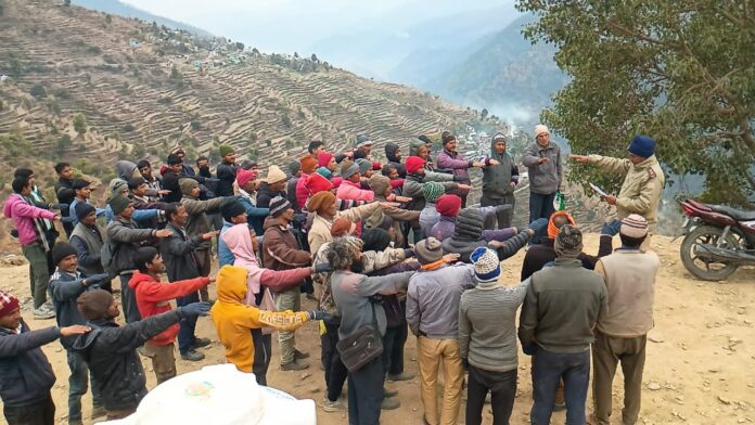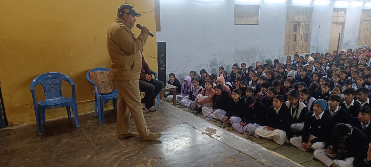 युवाओं व आम जनजनमानस को नशा, साईबर व अन्य सामाजिक कुरीतियों के प्रति जागरुक करने के उद्देश्य से पुलिस अधीक्षक उत्तरकाशी के निर्देशन में उत्तरकाशी पुलिस द्वारा चलाये जा रहें जनजागरुकता अभियान के अंतर्गत आज दिनांक 27 दिसंबर 2024 को थाना धरासू पुलिस द्वारा सरस्वती विद्या मंदिर इंटर कॉलेज चिन्यालीसौड़ तथा ग्राम मालना मे जनजागरुकता कार्यक्रम आयोजित कर छात्र छात्राओं, मालना गांव के गामीणों व सोलर प्लांट कंस्ट्रक्शन कंपनी के श्रमिक/कर्मचारी गण को नशे के दुष्प्रभाव, साइबर अपराध, बाल एवं महिला अपराध तथा यातायात नियमों की जानकारी के संबंध में विस्तारपूर्वक जानकारी देते हुये जागरूक किया गया। सभी को नशे के विरुद्ध शपथ भी दिलाई गयी।