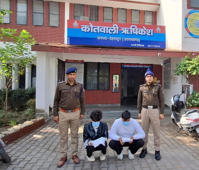 ऋषिकेश पुलिस द्वारा चन्द्रभागा पुल के नीचे से 02 अभियुक्त गौरव पुत्र हरिओम तथा साहिल गुंसोला पुत्र मखान सिंह को अलग – अलग 250-250 ग्रा0 कुल 500 ग्राम अवैध चरस के साथ किया गिरफ्तार। अभियुक्तो के विरूद्ध मु0अ0सं0: 01/25 धारा: 8/20 एनडीपीएस एक्ट का अभियोग पंजीकृत।