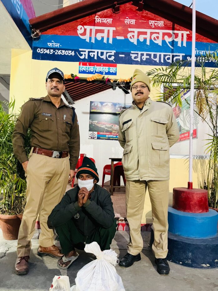 जनपद में प्रभावी आदर्श आचार संहिता के क्रम मे बनबसा क्षेत्रान्तर्गत चौकी धनुष पुल बनबसा से अवैध विदेशी शराब बरामद होने पर 01अभियुक्त को किया गया गिरफ्तार