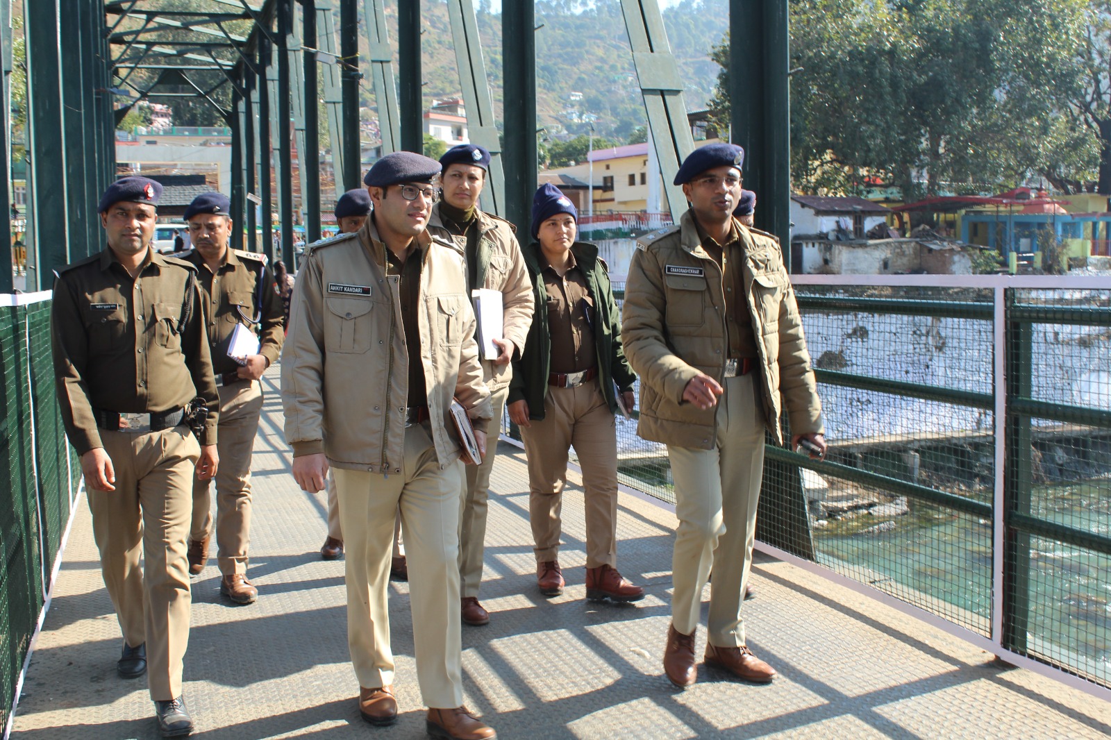 आगामी ऐतिहासिक/पौराणिक “उत्तरायणी मेले” को सकुशल सम्पन्न कराये जाने हेतु आज दिनांकः 07-01-2025 को श्रीमान पुलिस अधीक्षक महोदय जनपद बागेश्वर चन्द्रशेखर घोडके द्वारा पुलिस उपाधीक्षक बागेश्वर श्री अंकित कण्डारी व पुलिस टीम के साथ मेला क्षेत्रान्तर्गत बागनाथ मंदिर, चौक बाजार, दुग बाजार, कार्यक्रम स्थल नुमाइसखेत आदि स्थानों पर सुरक्षा का जायजा लिया गया।
