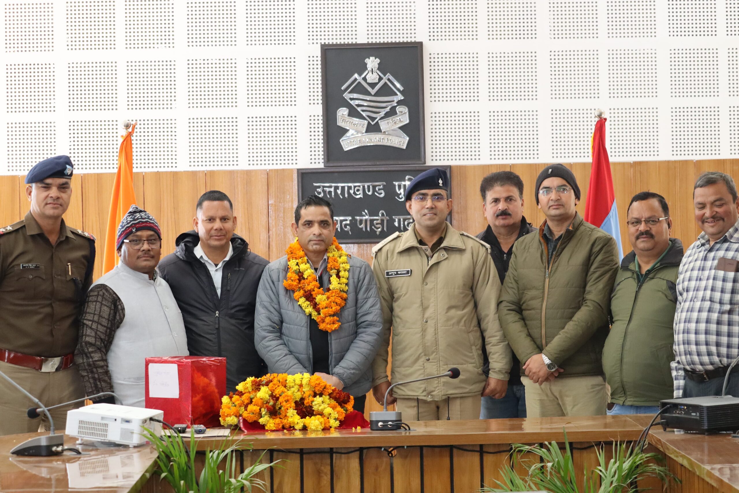 आज दिनाँक 11.01.2025 को पुलिस उपाधीक्षक जनक सिंह पंवार का जनपद पौड़ी गढ़वाल से जनपद उत्तरकाशी स्थानान्तरण होने पर के सम्मान में पुलिस लाईन पौड़ी में समस्त शाखा प्रभारी/पुलिस लाईन/पुलिस कार्यालय स्टाफ की उपस्थिति में भाव-भीनी विदाई समारोह का आयोजन किया गया। जिसमें अपर पुलिस अधीक्षक संचार अनूप काला द्वारा जनपद में उनके द्वारा किये गये कार्यों की प्रशंसा करते हुए भविष्य में भी इसी तरह लगन से कर्तव्यनिष्ठ होकर कार्य करने के साथ शुभकामनाएं दी गयी। साथ ही पुलिस उपाधीक्षक द्वारा जनपद में कार्यरत्त रहने के दौरान अपने अनुभवों को साझा करते हुए वरिष्ठ पुलिस अधीक्षक सहित सभी पुलिस अधिकारियों व कर्मगणों के सहयोग करने व एक साथ टीम भावना से कार्य करने की सराहना की गयी। जिसके उपरांत महोदय को समस्त पुलिस परिवार पौडी द्वारा भविष्य के लिए शुभकामनाएं देते हुए उन्हें भाव भीनी विदाई दी गयी।