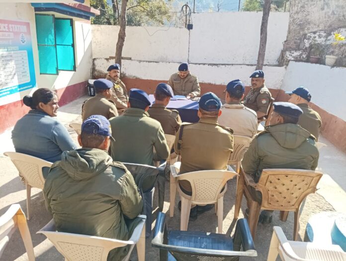 इस अवसर पर आगामी नगर निकाय चुनावों के सफल और शांतिपूर्ण संचालन के लिए अधिकारियों एवं कर्मचारियों के साथ एक गोष्ठी का आयोजन किया गया। पुलिस उपाधीक्षक ने निर्देश दिया कि चुनाव प्रक्रिया के दौरान थाना क्षेत्र में नियमित चेकिंग सुनिश्चित की जाए। साथ ही, थाना क्षेत्र में सक्रिय अपराधियों पर कार्रवाई तेज करने और जनता की सुरक्षा सुनिश्चित करने के लिए विस्तृत योजना बनाई जाए।