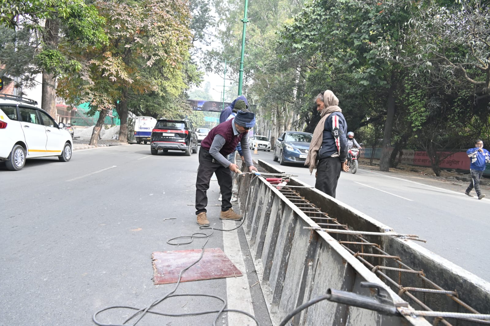 राजपुर रोड पर डिवाइडर निर्माण कार्य