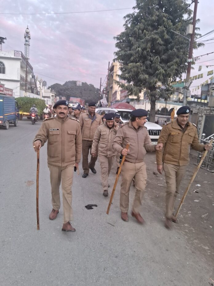 आगामी नगर निकाय चुनाव के दृष्टिगत दून पुलिस द्वारा संवेदनशील स्थानो पर किया फ्लैग मार्च