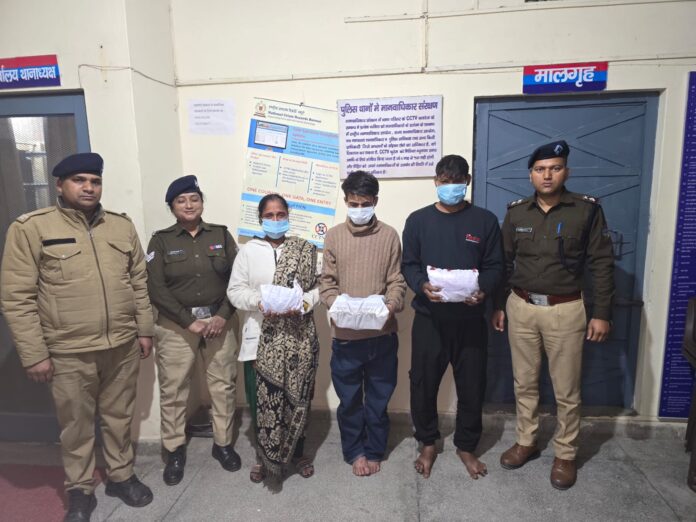 मुख्यमंत्री उत्तराखंड की “ड्रग्स फ्री देवभूमि 2025” की परिकल्पना को साकार करने के लिए एसएसपी देहरादून के निर्देशन में दून पुलिस द्वारा मादक पदार्थों की तस्करी में लिप्त अभियुक्तों के विरुद्ध लगातार प्रभावी कार्रवाई की जा रही है। इसी क्रम में आज दिनांक 19/01/2025 को रायपुर पुलिस को गोपनीय माध्यम से थाना क्षेत्रान्तर्गत सपेरा बस्ती के कुछ परिवारों के विगत कुछ समय से मादक पदार्थों की तस्करी में लिप्त होने तथा उक्त नशा तस्करों के पास काफी मात्रा में अवैध मादक पदार्थ होने की सूचना मिली। प्राप्त सूचना पर पुलिस टीम द्वारा सपेरा बस्ती में एक घर में दबिश दी गई, तो मौके से भारी मात्रा में अवैध चरस के साथ 03 नशा तस्करों (2 पुरुष, 1 महिला) किरन पत्नी राम, विकास सिंह पुत्र कृष्ण सिंह, अर्जुन कुमार पुत्र रमेश कुमार को गिरफ्तार किया गया। अभियुक्तों के कब्जे से पुलिस टीम द्वारा कुल 01 किलो 58 ग्राम चरस (अंतरराष्ट्रीय कीमत 02 लाख रुपये) बरामद की गई। अभियुक्तों के विरुद्ध थाना रायपुर में मु.अ.स. – 17/2025 धारा 8/20/27ए/29/60 NDPS ACT के अंतर्गत अभियोग पंजीकृत किया गया है।