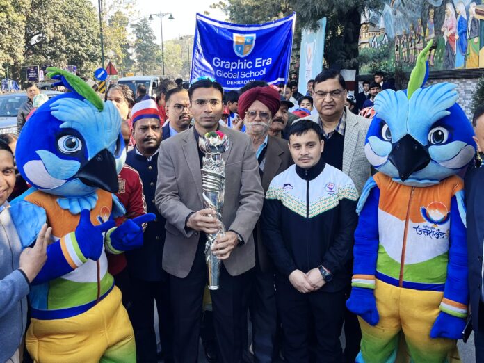 देहरादून दिनांक 25 जनवरी 2025, जिलाधिकारी सविन बंसल ने 38वें राष्ट्रीय खेलों के आयोजन के शुभंकर, लोगो, जर्सी, टेगलाईन एवं मशाल रैली (तेजस्विनी), का स्वागत सचिवालय से किया। मशाल रैली (तेजस्विनी) सचिवालय से घंटाघर तक निकाली गई। इस अवसर पर स्कूली बच्चों, एनसीसी कैडट सहित जनमानस ने प्रतिभाग किया।