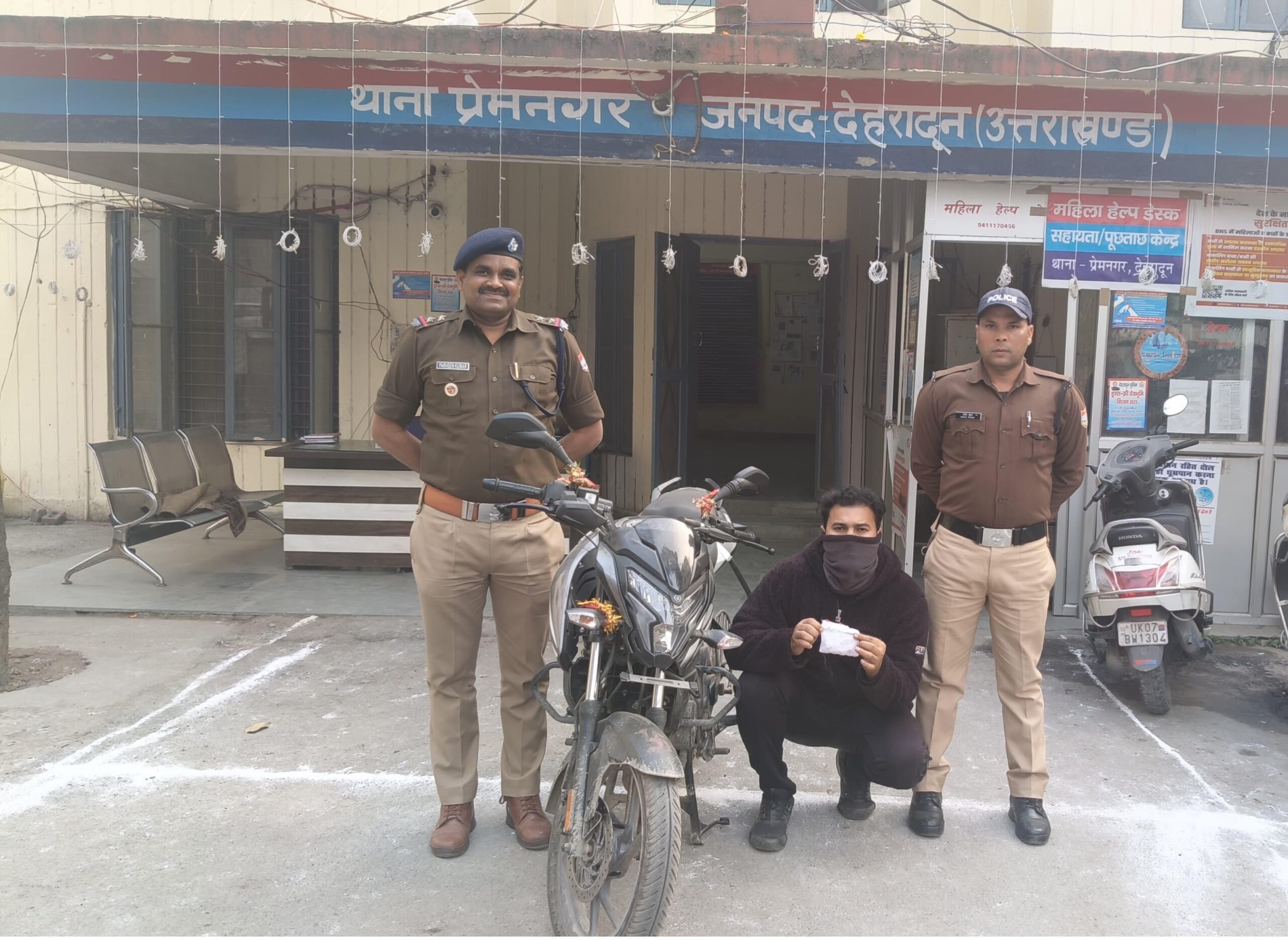 उक्त निर्देशों के अनुपालन में थाना प्रेमनगर पुलिस द्वारा कार्यवाही करते हुए थाना क्षेत्र में अलग- अलग स्थानों से 02 नशा तस्करों रजत धीमान को 42 ग्राम अवैध स्मैक तथा विनीत उर्फ विक्की को 220 ग्राम चरस के साथ गिरफ्तार किया गया। दोनो अभियुक्तों के बिरुद्ध थाना प्रेमनगर में NDPS एक्ट के तहत अभियोग पंजीकृत किया गया।