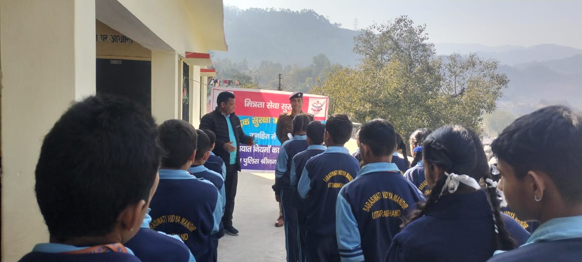 महिला थाना श्रीनगर पुलिस टीम ने सरस्वती विद्या मंदिर भक्तियाना में छात्रों को गुड और बैड टच के बारे में जानकारी दी, साथ ही सोशल मीडिया के जरिए होने वाले अपराधों से बचने के उपाय भी बताए। इसके अलावा, कोतवाली कोटद्वार पुलिस ने बसंत पंचमी मेले में भाग लेने आए लोगों को सड़क सुरक्षा और नशे से बचाव के बारे में जागरूक किया। पुलिस विभाग के इस प्रयास में सभी को आत्मनिर्भर और जिम्मेदार नागरिक बनने के लिए प्रेरित किया गया।