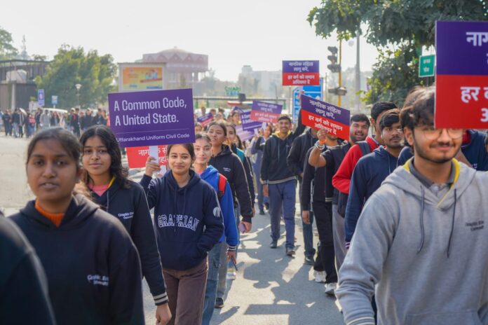 देहरादून में यूनिफॉर्म सिविल कोड (UCC) को लेकर जागरूकता बढ़ाने के लिए एक बड़ी रैली निकाली गई, जिसमें हजारों छात्रों ने भाग लिया। इस आयोजन का उद्देश्य आम जनता को UCC के महत्व और इसके प्रभावों के बारे में जागरूक करना था।