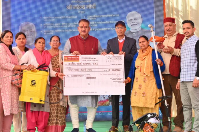इस दौरान विभिन्न समूह संगठनों के पदाधिकारियों को फार्म मशीनरी बैंक के तहत पावर वीडर, मल्टीक्रॉप थ्रेशर, ब्रश कटर, आटा चक्की, चौफ कटर और ट्रैक्टर जैसे उपकरण भी वितरित किए गए। इसके अलावा, किसानों को सहयोग राशि के चेक भी प्रदान किए गए, जिससे उन्हें आधुनिक कृषि उपकरणों का उपयोग करने में सहूलियत मिलेगी।