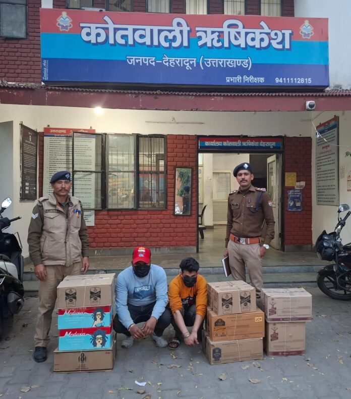 कोतवाली ऋषिकेश पुलिस ने अलग-अलग स्थानों से तीन अभियुक्तों को गिरफ्तार किया, जो अवैध रूप से शराब की तस्करी और बिक्री में लिप्त थे। गिरफ्तार आरोपियों के कब्जे से 08 पेटी अंग्रेजी शराब और 02 पेटी बीयर बरामद की गई है।