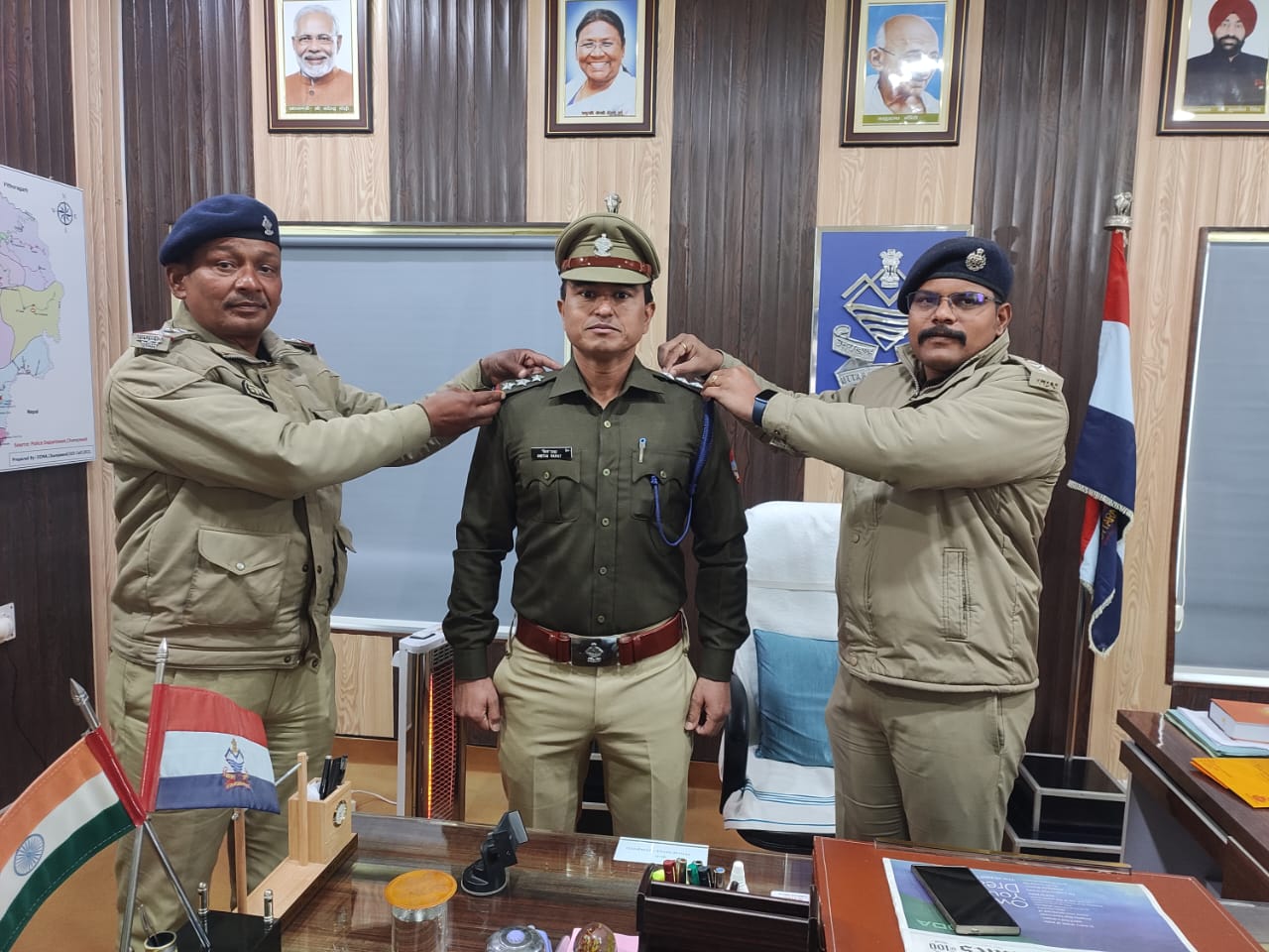 चेतन रावत बने निरीक्षक, पुलिस अधीक्षक ने लगाई बैच