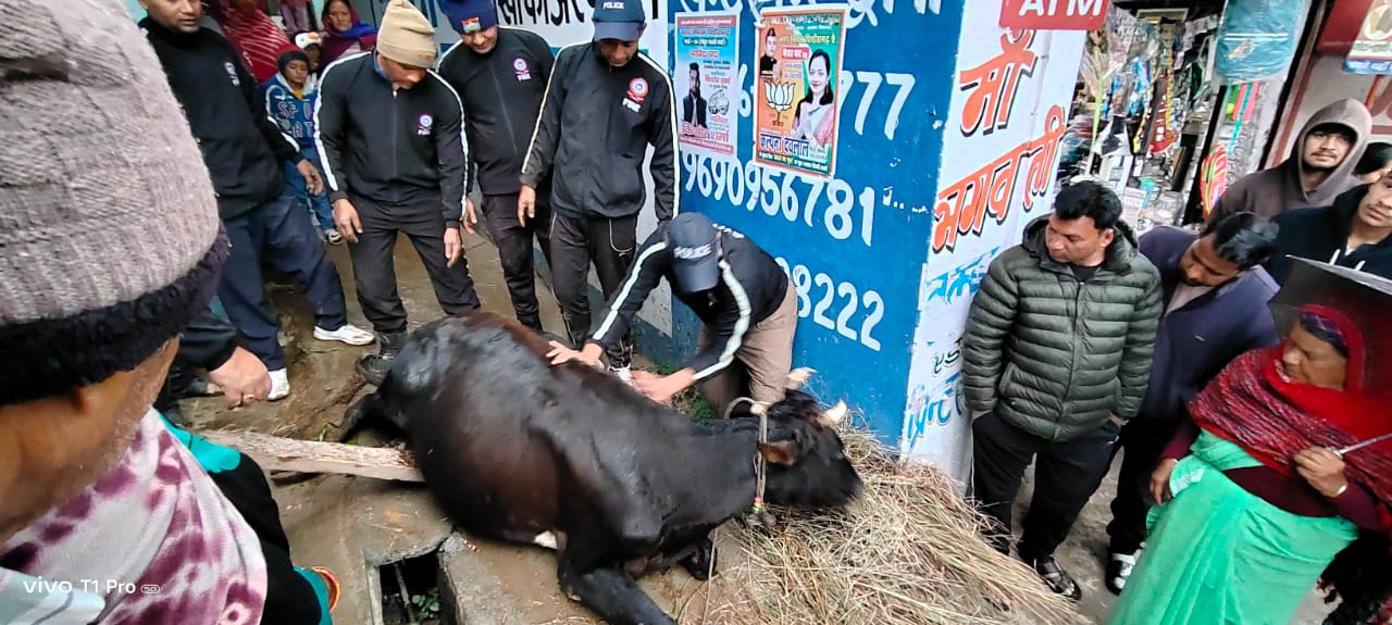 प्राप्त जानकारी के अनुसार, दिनांक 27 फरवरी को पिथौरागढ़ पुलिस को सूचना मिली कि ग्राम बस्ते में एक गाय संकरी नाली में फंस गई है। सूचना मिलते ही फायर स्टेशन पिथौरागढ़ की एक यूनिट तुरंत घटनास्थल की ओर रवाना हुई।