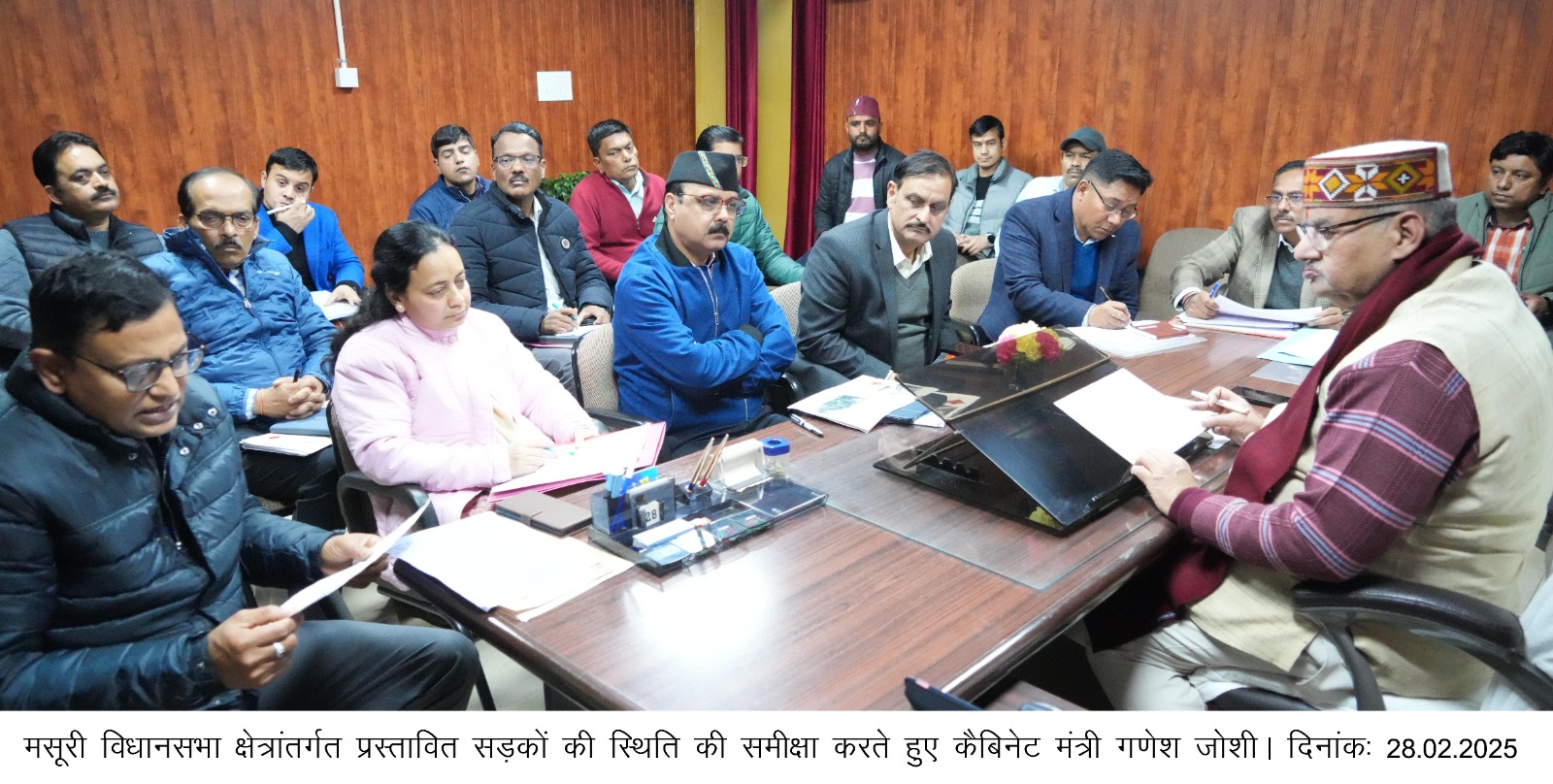 आज विधानसभा स्थित कार्यालय में कैबिनेट मंत्री गणेश जोशी ने मसूरी विधानसभा क्षेत्र के अंतर्गत प्रस्तावित सड़कों को लेकर समीक्षा बैठक की। बैठक में पीडब्ल्यूडी और पीएमजीएसवाई के तहत बनने वाली सड़कों की स्थिति की समीक्षा की गई, जिसमें सामने आया कि कई सड़क परियोजनाएं वन विभाग की स्वीकृति के कारण लंबित हैं।