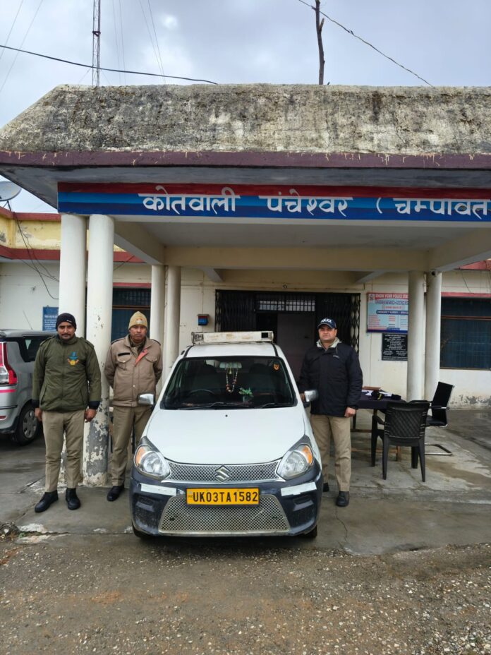 चम्पावत जनपद में पुलिस अधीक्षक के निर्देश पर थाना कोतवाली पंचेश्वर की पुलिस टीम द्वारा यातायात नियमों की जांच के दौरान एक बड़ी कार्रवाई की गई। रिपोर्ट्स के अनुसार, 28 फरवरी 2025 को सांयकालीन वाहन चेकिंग के दौरान लोहाघाट-मण्डलक मुख्य मार्ग पर एक वाहन को ओवरलोडिंग और खतरनाक तरीके से चलाया जा रहा था। चालक रवि सिंह, उम्र 35 वर्ष, निवासी ग्राम मण्डलक, थाना कोतवाली पंचेश्वर, जनपद चम्पावत, द्वारा वाहन संख्या UK-03-TA-1582 (ऑल्टो) को दुर्गम पर्वतीय मार्ग पर गैर-जिम्मेदाराना ढंग से चलाया जा रहा था।