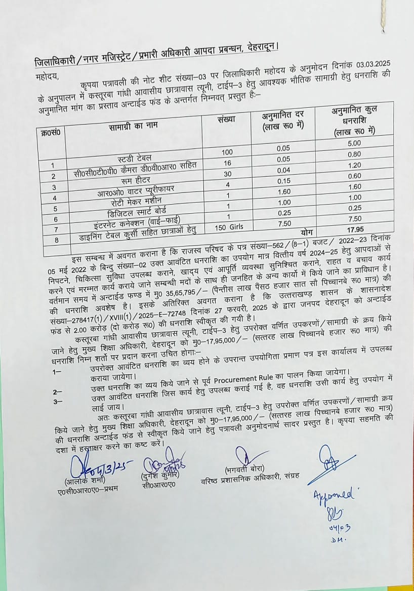 बालिका छात्रावास को 17.95 लाख, इंटरनेट और डिजिटल सुविधाएं मिलेंगी